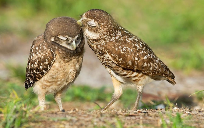 Пару сов застали в трогательный момент. Фотограф дикой природы Джуди Маллок провел месяц, снимая 15 семей сов в южной Флориде, и был покорен их забавными манерами и выражениями.