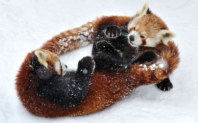 Реальные кунг-фу панды играют в снегу. Йозеф Гелернтер снял, как милые красные панды катаются в снегу в зоопарке Тиргартен Шенбрунн в Вене.
