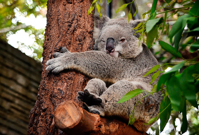 Ну и конечно, что делает сразу после пробуждения любая уважающая себя коала (панда, бобер, кабанчик, сурикат, хиракс…)? Несомненно, начинает лениво что-нибудь жевать. В случае коалы — эвкалипт: