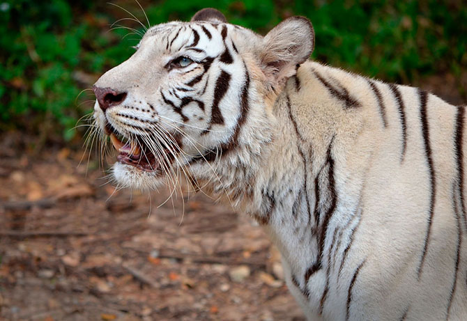 В отличие от предыдущих кошек, тигры были как-будто по-настоящему бодры! Белая тигрица постоянно что-то высматривала в небе, то ли отмеряя, когда солнце наконец начнет клониться к горизонту, то ли одной ей известными методами пытаясь вызвать дождь: