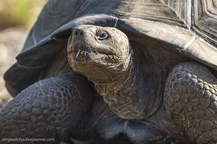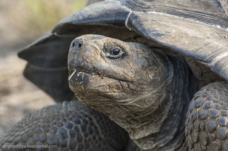 Вьюрки Дарвина помогают черепахам избавляться от паразитов — они вытягивают голову из панциря и подставляют птичкам шею, куда цепляются клещи: