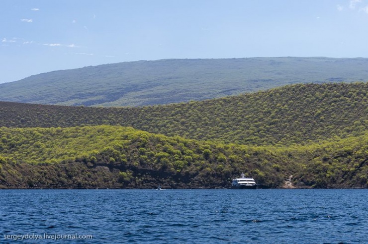 Долгое время бухта Тагус на острове Изабелла использовалась как место стоянки пиратов, разбойников и китобоев. Известна она так же посещением Дарвина — в честь него назван местный вулкан и озеро. Здесь много сухопутных игуан, которые выглядят симпатичнее своих морских собратьев и галапагосских черепах. О тех и других подробнее в этом посте...