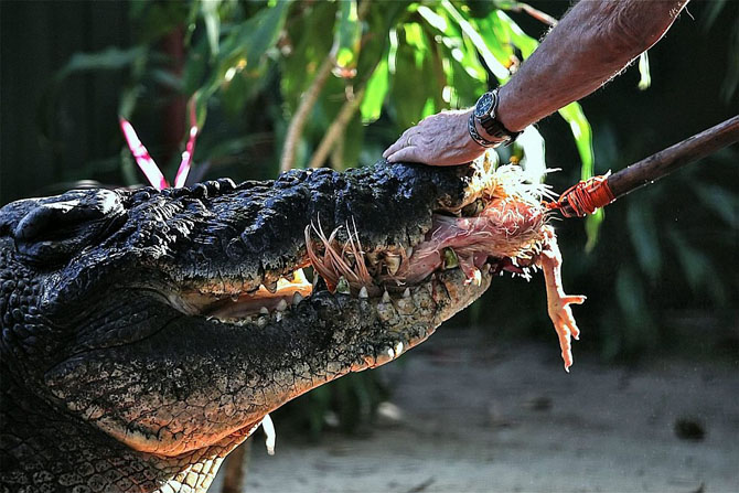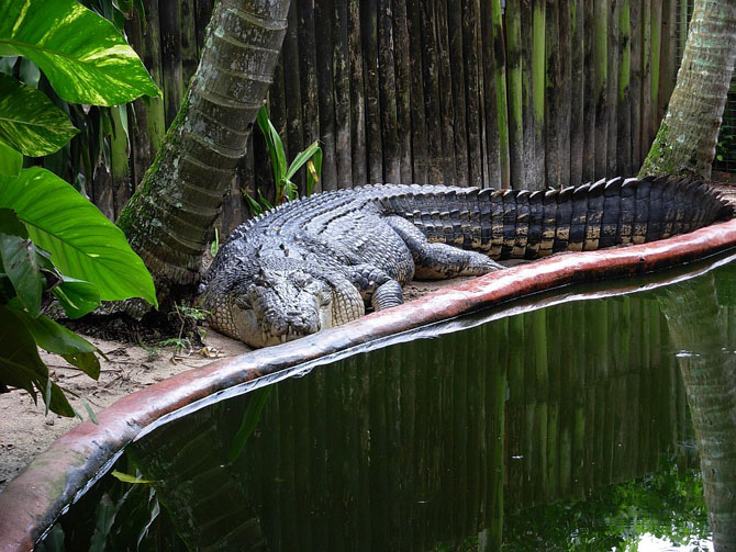 Этот гигант был пойман 26 лет назад в дикой природе в Австралии. Он нагонял страх на местных жителей и доставлял немало неудобств, нападая на лодки. Его поселили у владельца фермы Green Island в парке Marineland Melanesia.