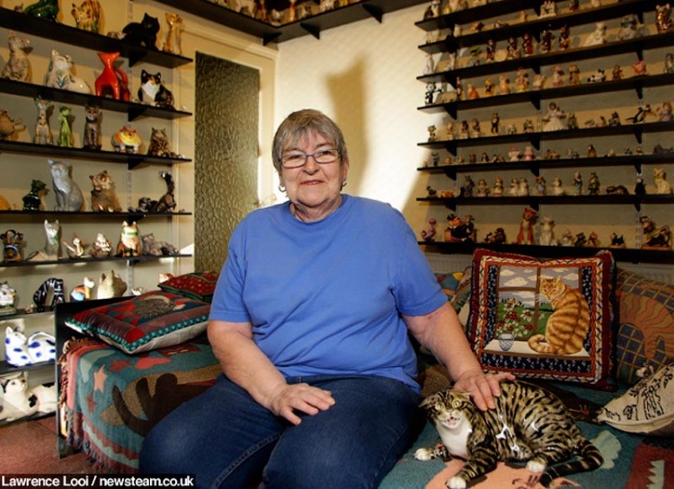 Любовь к кошкам можно выражать разными способами. Так 60-летняя англичанка Памела Коул собирает керамические статуэтки в виде любимых животных. В ее коллекции почти 2200 фигурок, и с каждым годом число экспонатов только увеличивается. Для хранения своей обширной коллекции женщина специально выделила несколько комнат в своем доме.