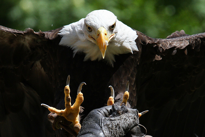 8 место. Белоголовый орлан — национальный символ США. Питается мелкими млекопитающими, рыбой и падалью. Охотиться предпочитает утром. Представители данного вида обитают на территории США, Канады, островов Сен-Пьер и Микелон.
