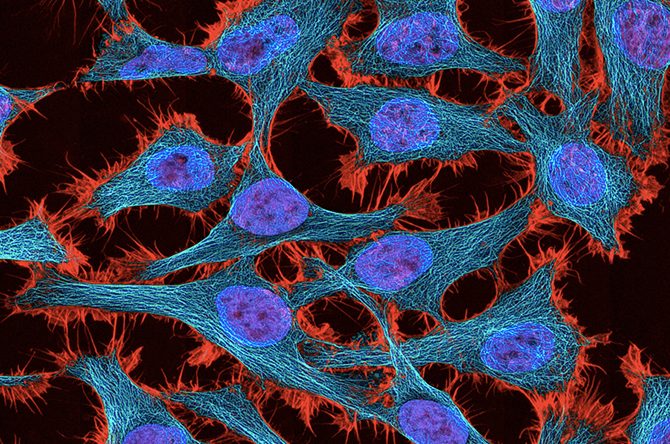 В отличие от обычных клеток эти обладают уникальной способностью делиться бесконечное число раз. Деление это возможно благодаря тому же ферменту теломераза: он наращивает теломеры на концах ДНК хромосом. Впервые они были обнаружены в раковой опухоли шейки матки Генриетты Лакс в 1951 году. Сейчас клетки HeLa используется для изучения рака, СПИДа и множества других болезней и различных веществ.Источник: dnpmag com