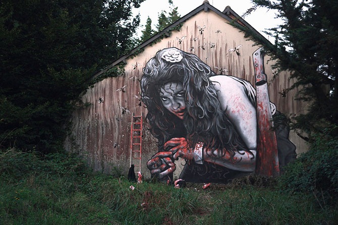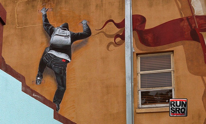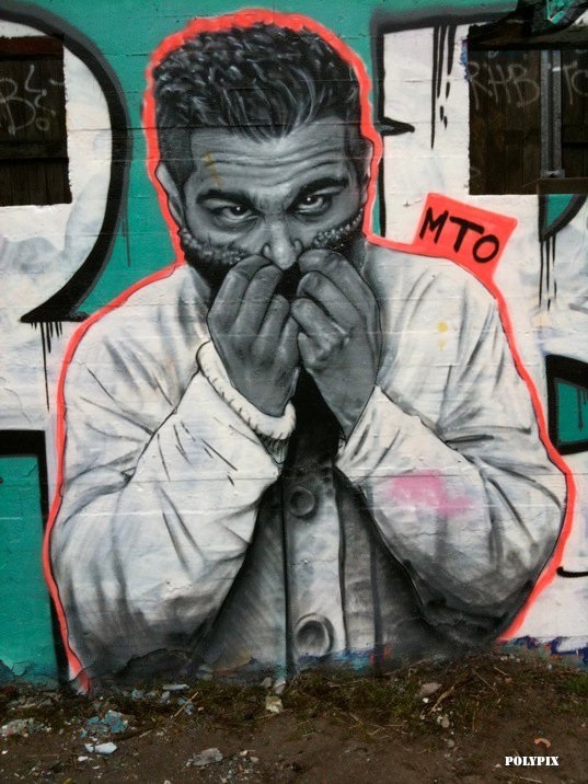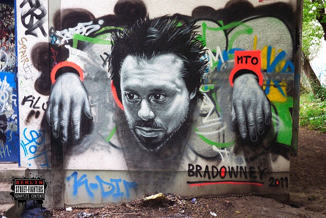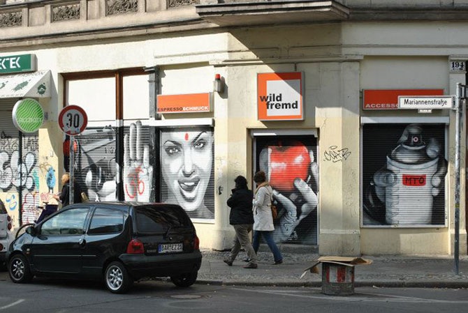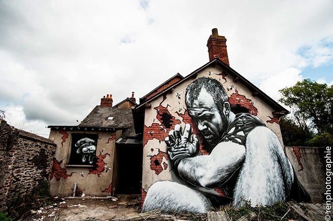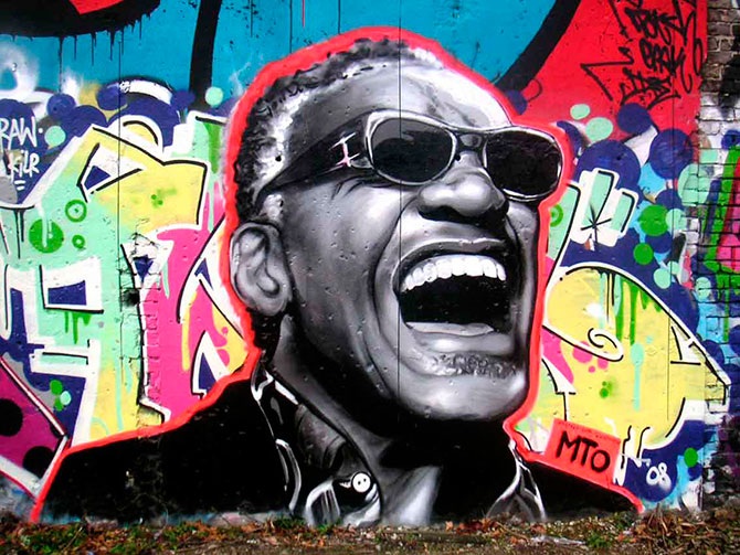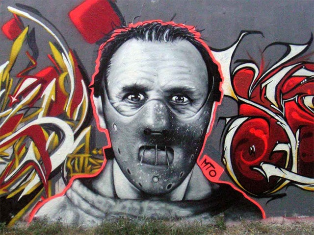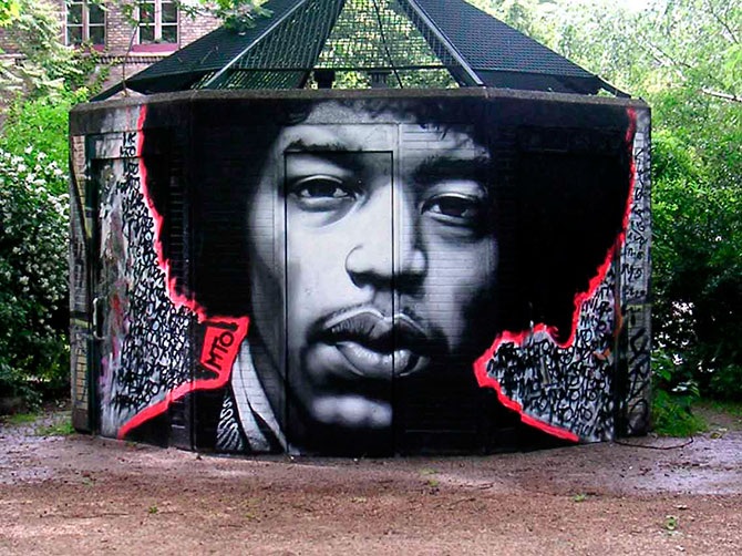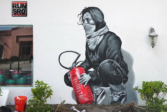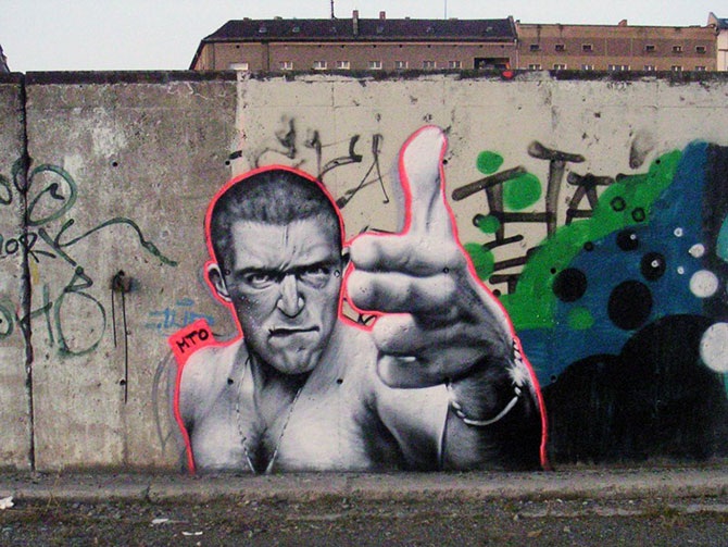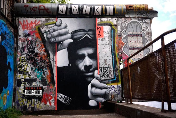Отличительные черты его стиля – фотореалистичность черно-белых портретов и красная линия вокруг них.