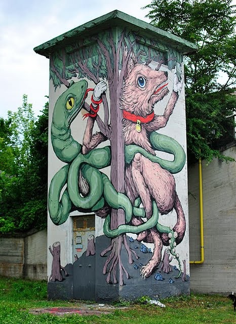 Эрика Ил Кэйн — итальянский современный художник. Работает в жанрах уличного искусства, рисунка и инсталляции, где главными героями всегда являются животные.