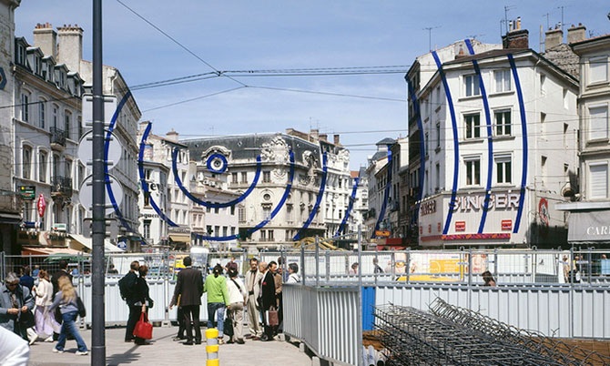 Феличе Варини – 60-летний художник из Швейцарии. Живет в Париже. С 1979 года рисует на стенах домов и помещений различные геометрические линии, которые при рассмотрении с определенной точки образуют двухмерное изображение.