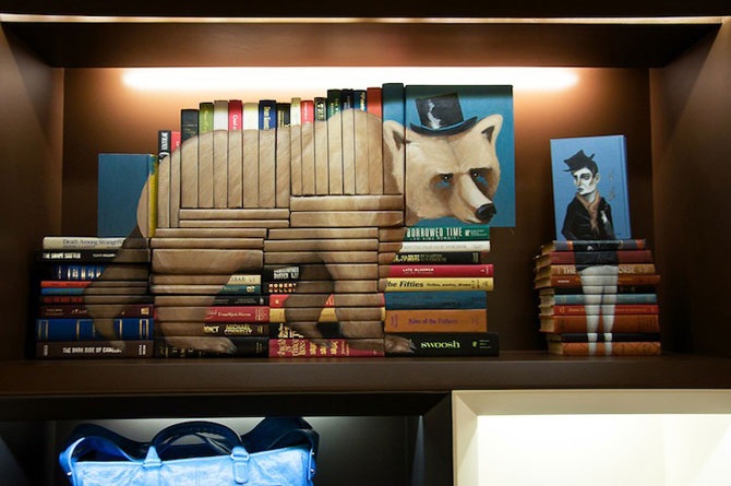 Художник из Лос-Анджелеса Майк Стайлк придумал, как вдохнуть новую жизнь в старые книги, годами пылящиеся на полках. Он рисует причудливых и меланхоличных персонажей на их корешках и обложках.