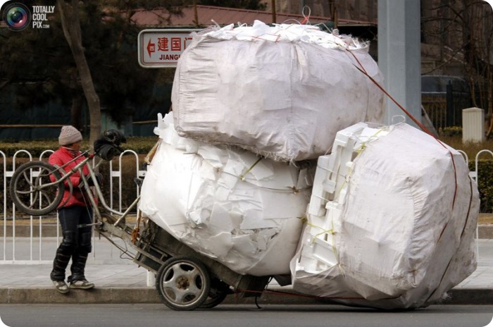 2. Женщина с пенопластом на переработку на улице Шанхая. (REUTERS/ Nir Elias)
