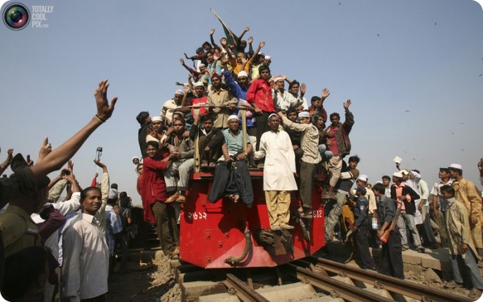 25. Переполненный поезд в город после последней службы во время Бишва Итема в Тонги, на окраине Дакки. Трехдневное паломничество Бишва Итема – второе крупнейшее мусульманское паломничество. (REUTERS/Andrew Biraj)