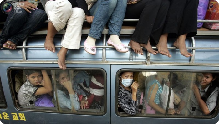 1. Люди висят на дверях пригородного поезда в Джакарту в Депоке, провинция Западная Ява. По данным ж/д компании «PT Kereta Api Indonesia», каждый день в Джакарту отправляют 300 вагонов, в (и на) которые умещаются 500 тысяч человек. В 2007 году из-за ударов током и падения с крыш погибли 26 человек. (REUTERS/Crack Palinggi)