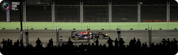 7. Себастиан Феттель выводит болид из гаража во время тренировки перед гран-при Формулы 1 в Сингапуре, 23 сентября 2011 года. (REUTERS/David Loh)