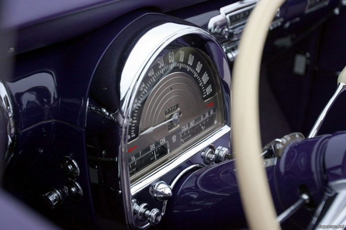 Большое количество хрома в передней части было типичным для Кадиллаков этого времени, однако форма решетки скорее напоминает Delahaye, чем какой-либо американский автомобиль. Двухэтажные бамперы — тоже довоенная практика. Салон, как и кузов имеет двухцветное решение. Складная мягкая крыша и окна с сервоприводами.