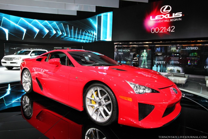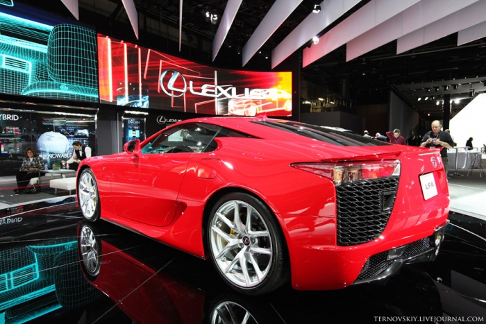 21. Презентацию нового 4-местного купе Lexus LF-LC я не застал. На стенде пока красуется спорткар Lexus LFA, стоимостью около 500 000 евро. 4,8 литра, V10, 560 л.с.