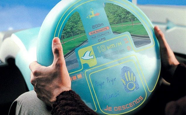 У французского концепта Osmose руль – не совсем руль. Скорее, это большой экран в ретро-стиле, который водителю надо крутить.