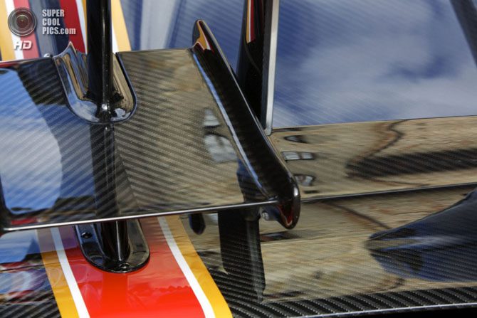 Технические характеристики не могли не отразиться на дизайне. Создатели машины учли самые мелкие детали, которые могут повлиять на аэродинамику машины. Так, на переднем бампере появились новые дефлекторы, на капоте (который к слову, расположен сзади) — вертикальный стабилизатор, а на заднем антикрыле — система Drag-Reduction-System (DRS), которая работает в двух режимах. Оба режима могут быть активированы в любое время путем нажатия кнопки, размещенной на рулевом колесе. При желании можно заставить DRS работать автоматически на основании алгоритмов, заложенных инженерами в «мозги» автомобиля, а также многочисленных данных, полученных от самой машины.