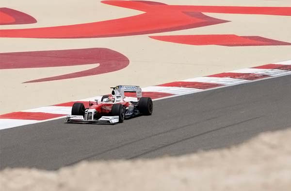 Немецкий пилот из команды Toyota Тимо Глок (Timo Glock) во время третьего тренировочного заезда Гран-при F1 Бахрейна в Манаме 25 апреля 2009. (REUTERS/Ahmed Jadallah)