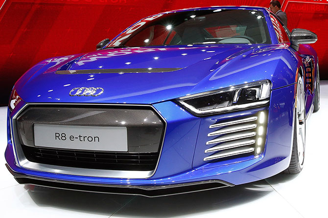 Электрокар Audi R8 e-tron. Под капотом Audi R8 e-tron установлены два электродвигателя, общая мощность которых составляет 462 л.с. и 920 Нм крутящего момента. Разгон от 0 до 100 км/ч составляет 3,9 секунды, а максимальная скорость модели – 250 километров в час. Зарядки достаточно будет на 450 километров.
