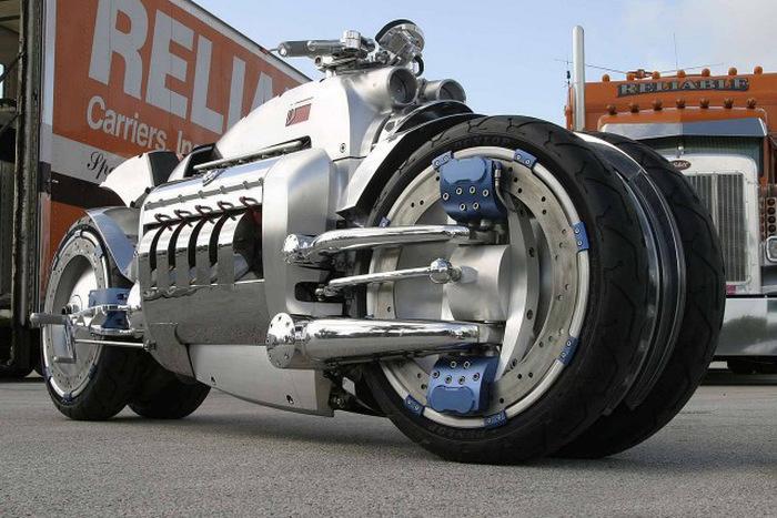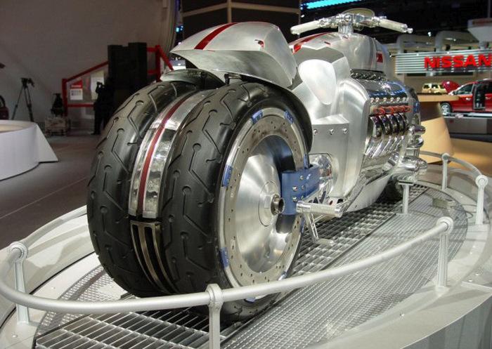 Они собраны в ручную, оснащены 8,3-литровым двигателем V10 мощностью 500 лошадиных сил от спорткара Dodge Viper. До 100 км/ч мотоцикл разгоняется менее чем за 2,5 секунды, а его максимальная составляет — 480 км/ч. Мотоцикл имеет сдвоенные передние и задние колеса. Зазор между ними равен нескольким сантиметра, и они имеют независимую подвеску.