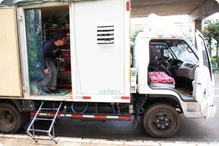 В Китае, как известно, перенаселение и жить некоторым просто негде, вот эта молодая пара переоборудовала свой грузовичок под дом. Получилось уютненько, но места маловато — всего то 8 квадратных метров…