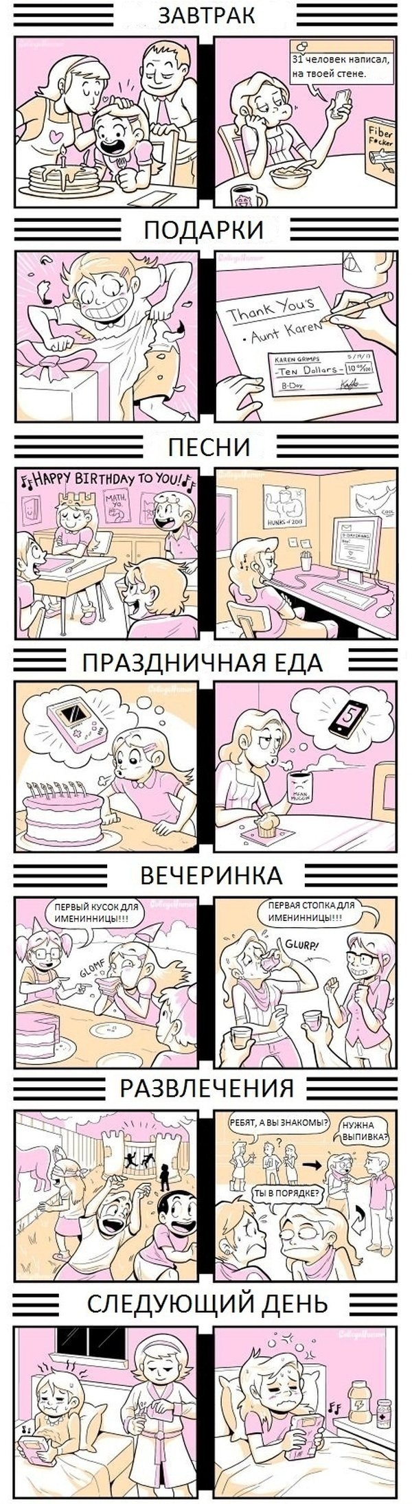Правдивый комикс о дне рождении в стиле «тогда и сейчас».