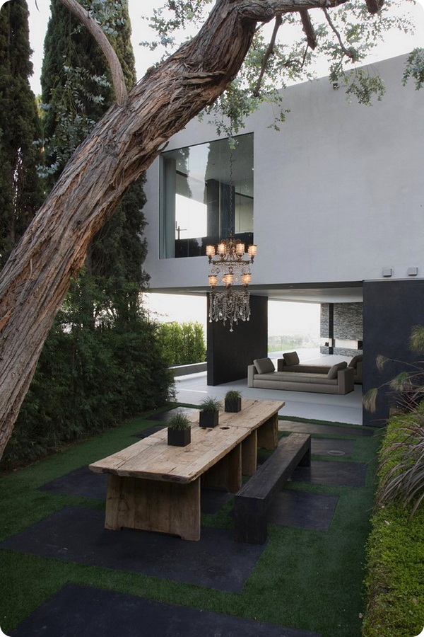 1. Структура и отделка особняка, на самом деле, гораздо сложнее, чем может показаться. Архитекторы разрабатывали проект специально для данной местности. Расположенный на крутом склоне холма, дом имеет два этажа, причем они повторяют форму ландшафта. Комнаты, террасы и сады на каждом из уровней связаны между собой благодаря интересной планировке. Но главным элементом дизайна являются окна. Они не то что огромны, они просто заменяют стены почти во всех комнатах. Различные зеркальные панели, отражая солнечный свет, добавляют помещению визуально большую просторность и освещенность. Таким образом, в интерьере и в экстерьере стекло в различном исполнении является основным использованным материалов. В результате, природа как бы проникает внутрь особняка, а особняк распространяет себя на окружающую природу, сливаясь с ней, словно часть ландшафта.