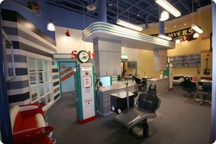 Декор офиса удивляет с первого взгляда и переносит в заграничную эпоху 50-х годов.