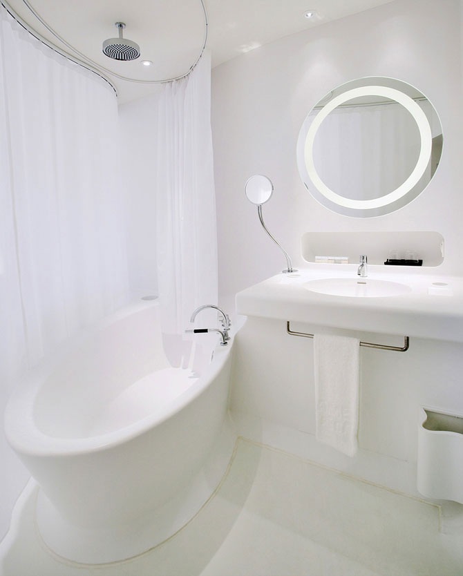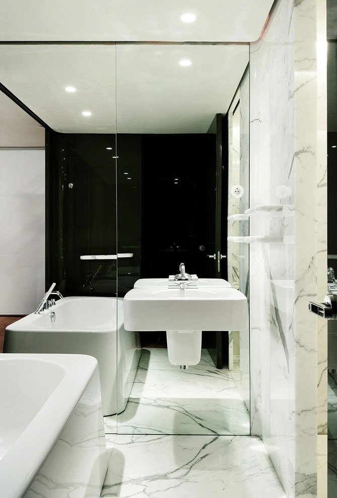 В распоряжении гостей находятся 342 номера, 308 из которых премиум класса, 33 сьюта и пентхаус. Над проектом работали 19 всемирно известных архитекторов и дизайн-студий, причем каждый занимался определенным этажом, лобби, рестораном, баром или паркингом. Заказчик не желал ограничивать творчество профессионалов финансово либо технически, и финальный бюджет по итогу составил примерно €75 миллионов.