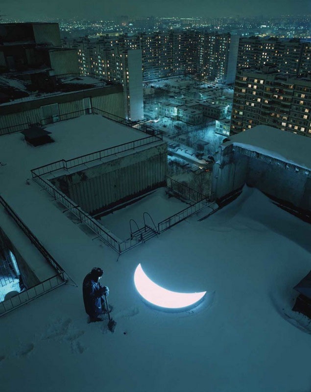 Тишков называет эту романтическую инсталляцию «визуальной поэмой, в которой рассказывается история о человеке, который нашел Луну и остался с нею на всю жизнь.» Серия была разработана Тишковым и сфотографирована Бендиковым.