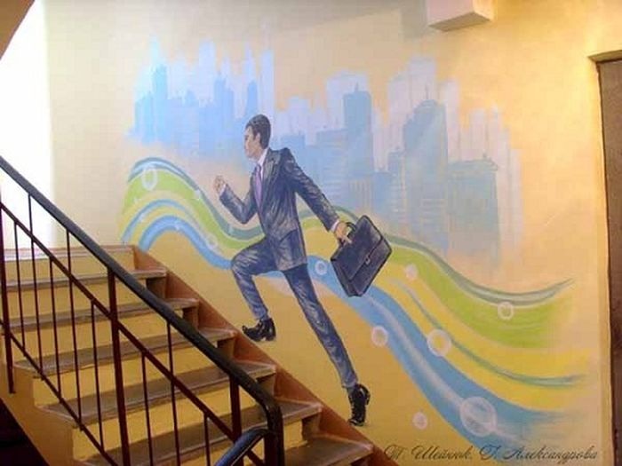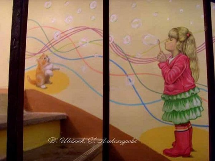 В Сарове Нижегородской области одно из товариществ собственников жилья признано лучшим за креативное украшение лестничных маршов. Стены подъездов украсили портретами самих жителей. Заказали профессиональному художнику, который познакомился с обитателями дома, а потом оставил им такой сюрприз. Вот можем же мы, когда захотим сделать среду нашего обитания приятной взору.
