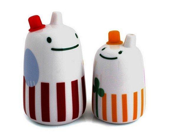 А в этих керамических человечках трудно признать знаменитых Бонни и Клайда. Несмотря на то, что эти дизайнерские бутылочки именно так и называются.