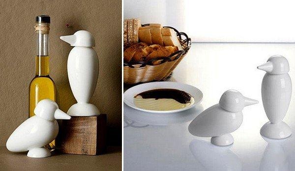 Для тех же поваров, которые предпочитают четвероногим домашним любимцам пернатых и крылатых, есть отдельный набор бутылочек. Конечно, в виде птиц. Причем самых разных: от больших попугаев какаду до маленьких кругленьких снегирей.