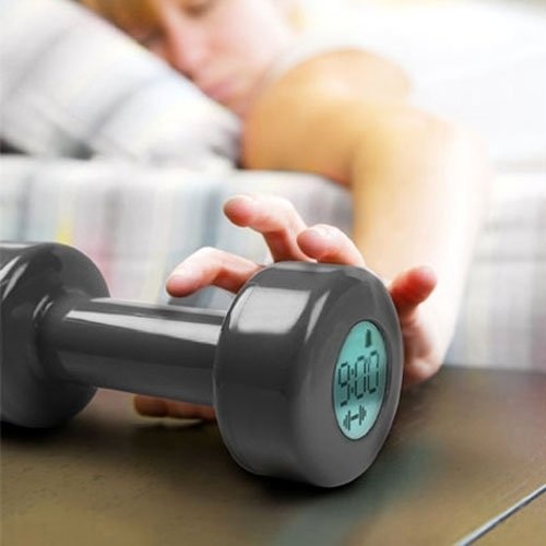 Будильник Shape Up Alarm Clock в виде гантели не умолкнет, пока вы не поднимите его 30 раз.
