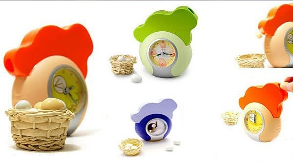 Пять крошечных яиц, которые вылетают из этого будильника, необходимо собрать, и вложить в него обратно, только тогда он перестанет кукарекать.