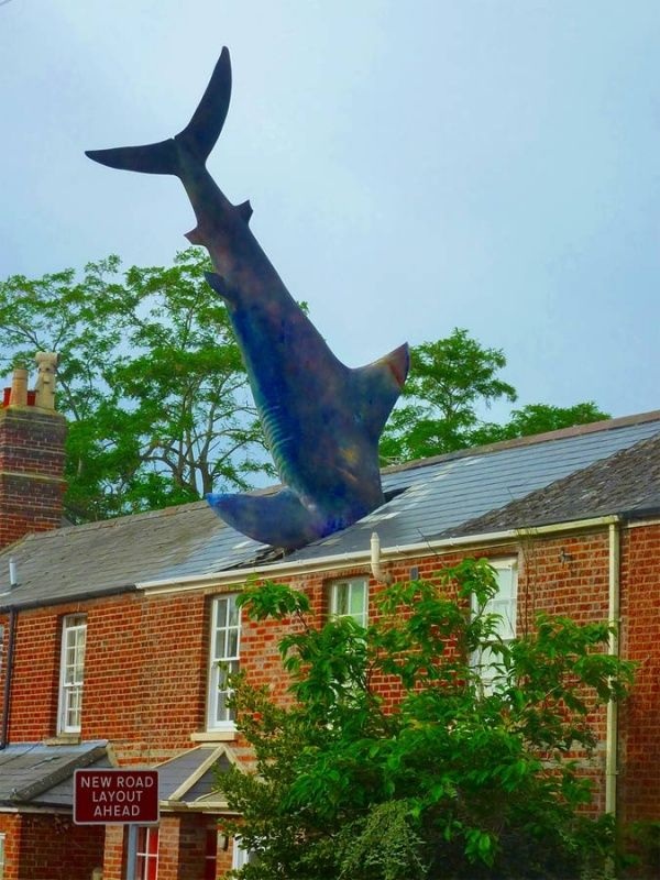 Хедингтонская акула символизирует ярость атомной энергии, которая, по мнению создателя хищницы Билла Хайне, только вредит человечеству. Оксфорд, Великобритания