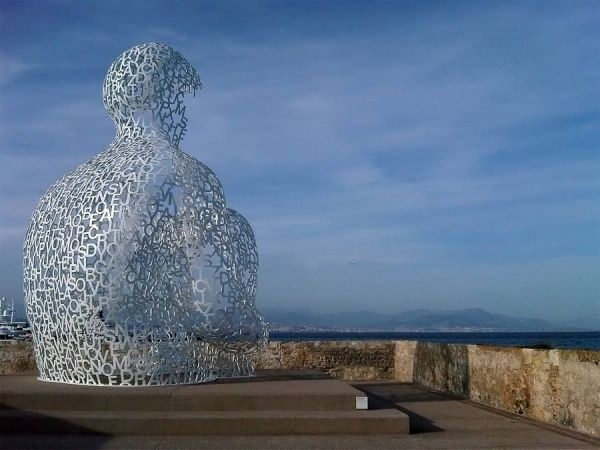 8-метровая скульптура «Странник» создана из нескольких сотен металлических букв. Антиб, Лазурный берег, Франция