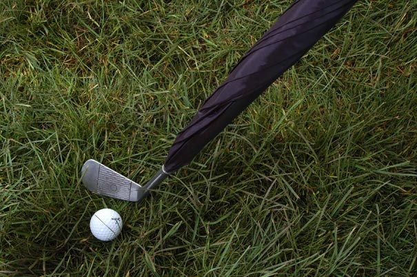 Дизайн этого зонта был навеян игрой в гольф на дождливом Альбионе, где дизайнеру Sebastian Errazuriz приходилось постоянно таскать с собой и клюшку и зонт одновременно.