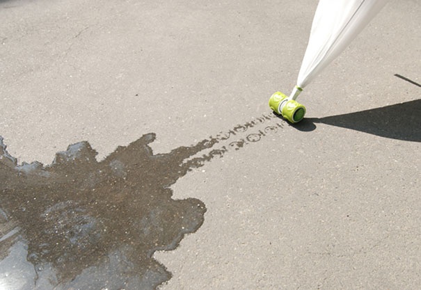 Воронкообразный зонт от дизайнера Alex Wooley собирает дождевую воду и по ручке транспортирует ее в пистолет, превращая прогулку под дождем в настоящее развлечение.