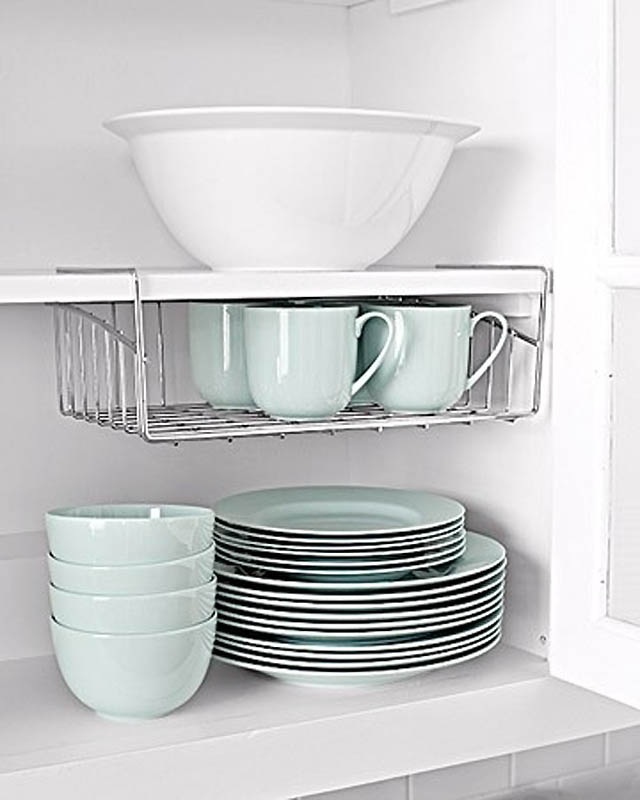 15. В кухонном шкафу можно прикрепить к полкам решетку.