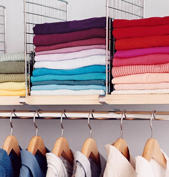 3. Используйте упругие карнизы для разделения вещей в шкафу.