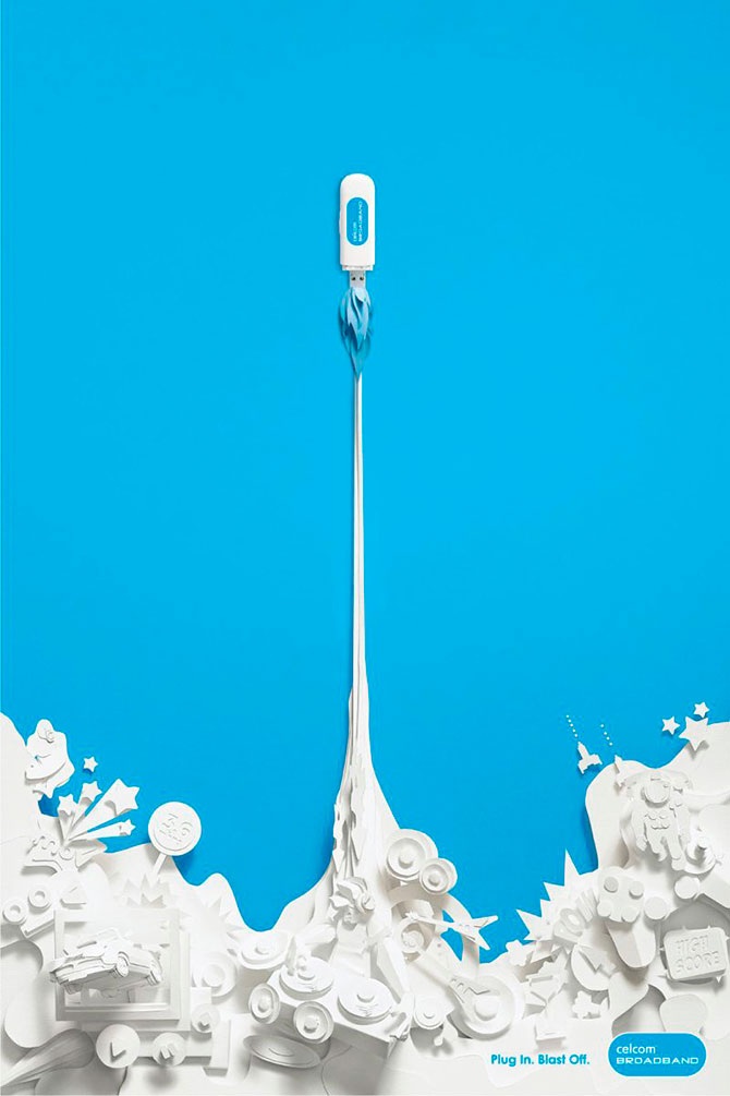 Отличная бумажная графика в рекламе интернет-провайдера Celcom. Слоган �Подключайтесь и стартуйте�, оставив всю бумажную волокиту позади. Креатив агентства M&CSaatchi.;