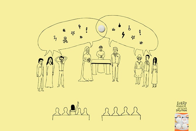 Иллюстрации �от-руки� в рекламе обезболивающего средства Anador. Слоган: У любой головной боли одно решение.