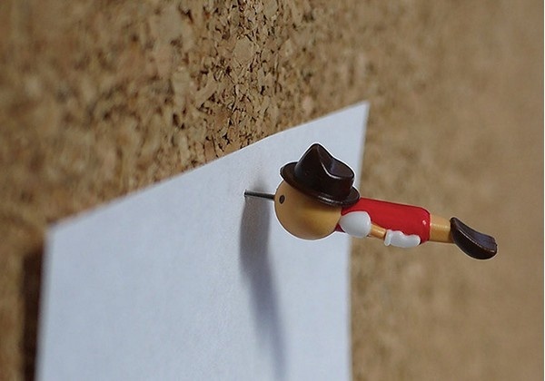 Необычные офисные кнопки Real Boy Pins в виде Пиноккио.