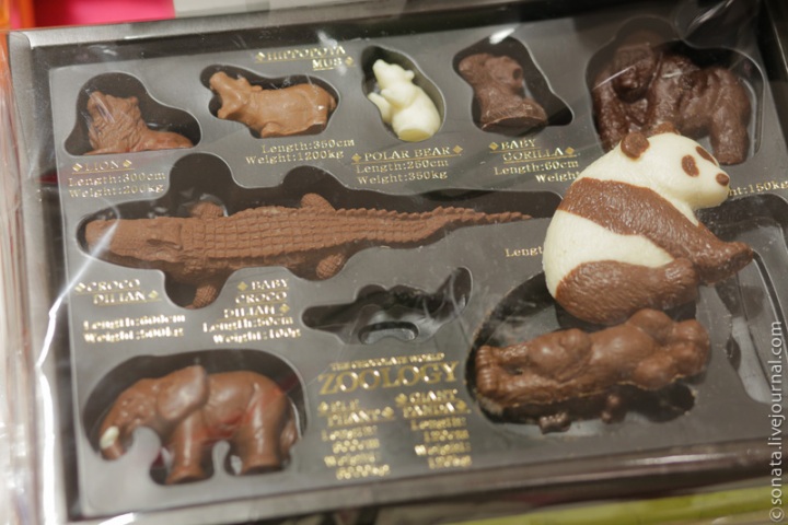 И всякие милые животные. Цены за эти наборы такие, что можно предположить, что это самый дешевый и невкусный соевый шоколад