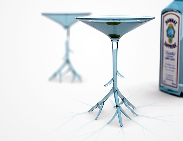Бокал создан специально для джина Bombay Sapphire, который гордится своим деликатным растительным ароматом. Дизайнер Бенжамен Юбер придумал и вручную выдул новый вид мартини-бокалов.