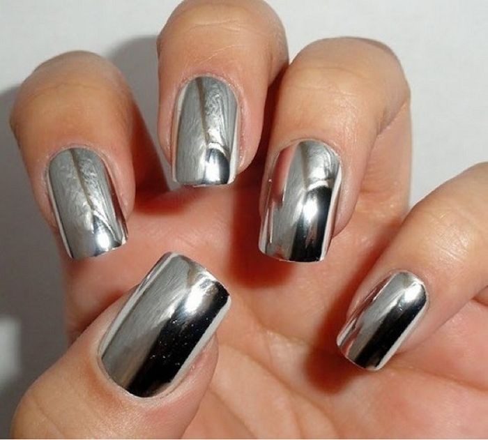 С помощью фольги можно сделать замечательный маникюр. Покрой ногти прозрачным лаком и прикрепи к ним фольгу. Подожди немного, а затем аккуратно, но рывком сними фольгу. Сверху покрой закрепителем.