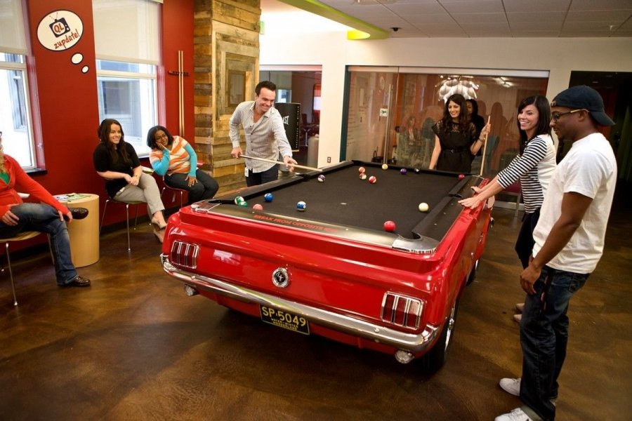 В офисе компании Quicken Loans сотрудники могут сыграть в бильярд на столе стилизованном под Ford Mustang, поиграть в баскетбол или покататься на мини-скутерах