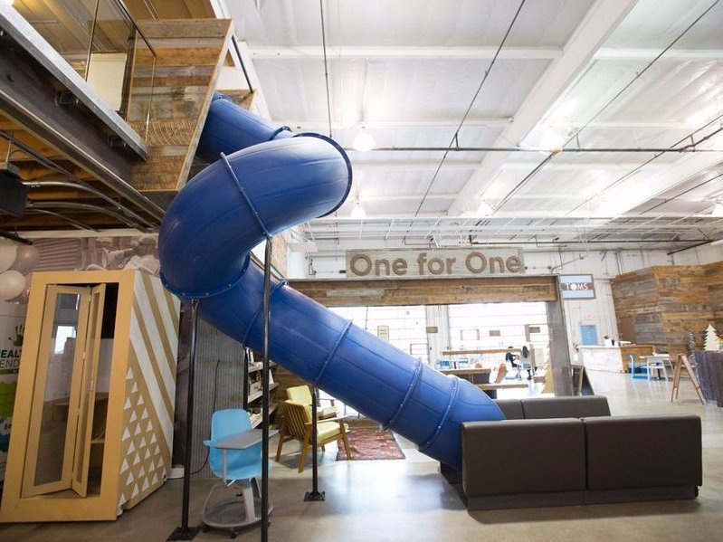 Креативное пространство офиса TOMS может похвастаться закрытой горкой